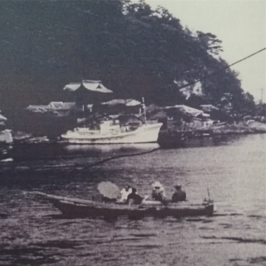 浦賀の町は、古い町並みや石畳の路地、歴史ある寺社が残る情緒豊かな町。船から眺める海と山の景色は、日常を忘れさせる絶景です。(写真左は昭和30年頃の渡船)