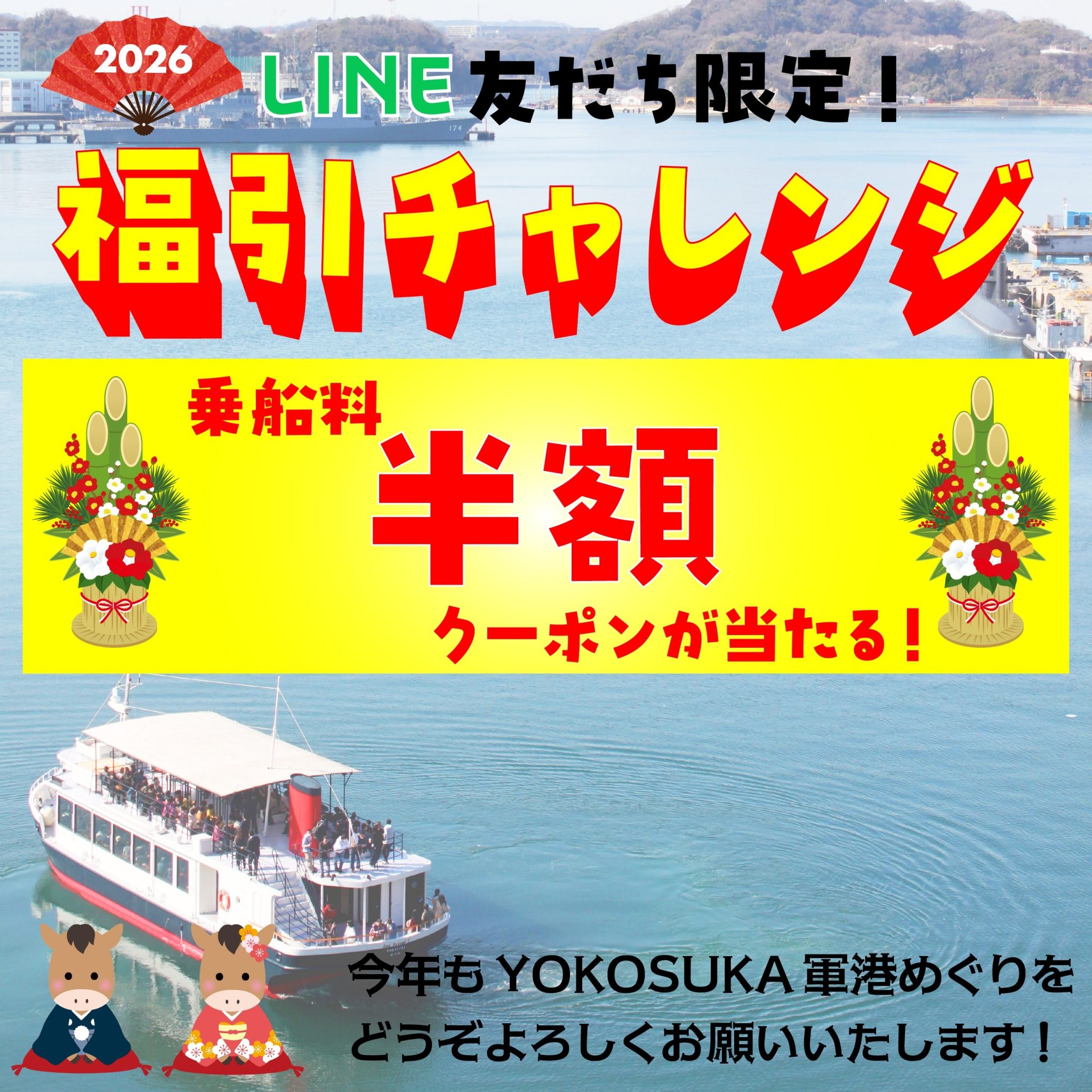 猿島航路と軍港めぐりで、福引を実施します!!