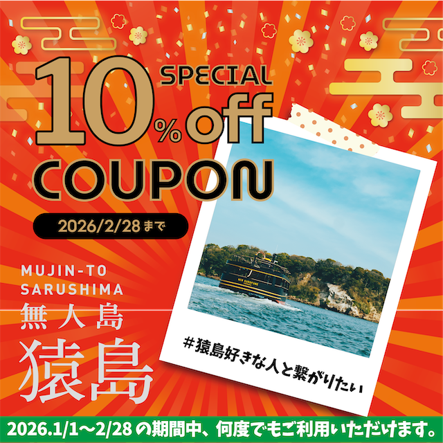 福引チャレンジの他にも期間中、何度でも使用可能な【乗船料10%オフクーポン】をプレゼント!