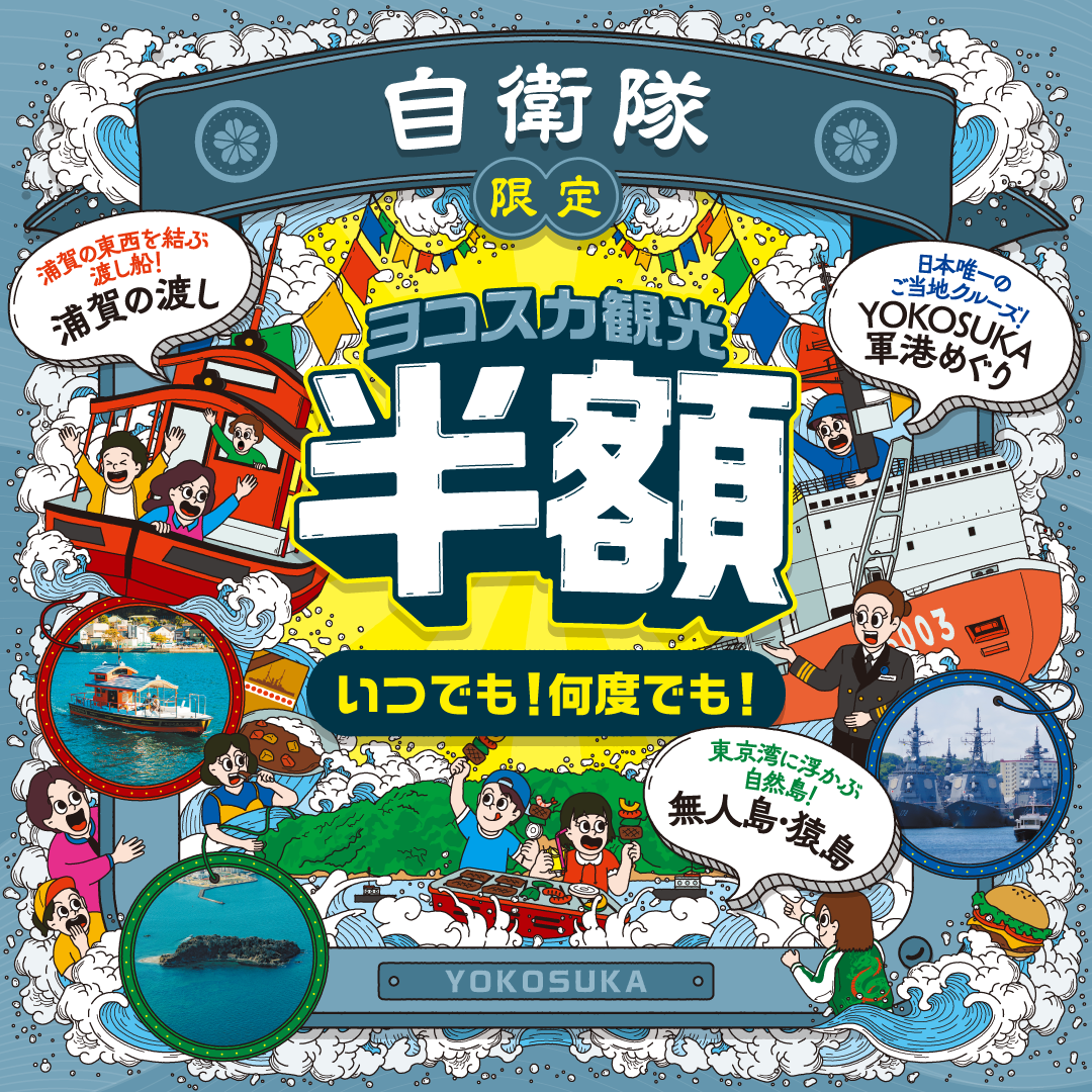令和7年4月1日より現役の自衛官(陸・海・空)ならびに防衛大学校に在学中の方は、下記3つの航路の乗船料が半額となる【自衛隊割】の対象とさせていただきます。